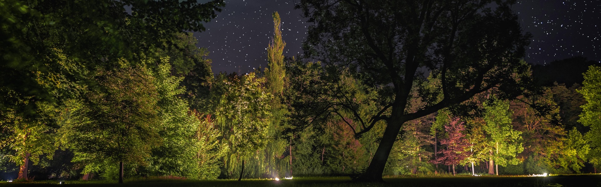 Eröffnung "Parkgeflüster" Zum 10. Mal wird das einzigartige Licht-Klang-Erlebnis im denkmalgeschützten Kurpark die Menschen begeistern: Aus dichten Baumkronen ertönt leise Musik, mischt sich mit dem Gezwitscher der Vögel und steigert sich bei einbrechender Dunkelheit mit einem geheimnisvollen Wechselspiel aus Licht und Farben zu einem ganz besonderen Kunstgenuss für Musik- und Naturfreunde. |