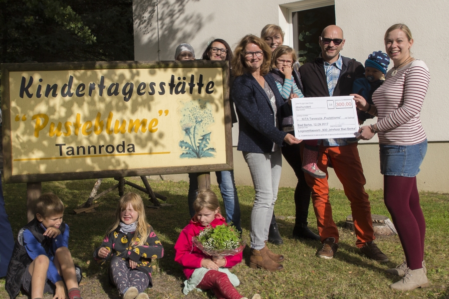 Tannroda. Die Kindertagesstätte „Pusteblume“ aus Tannroda hat den Wettbewerb um das Logo „900 Jahre Ersterwähnung Bad Berka“ gewonnen. Maria-Catharina Domröse, Leiterin der Tourist-Information, überbrachte im Ortsteil der Kurstadt den symbolischen Scheck über das Preisgeld von 300 Euro.